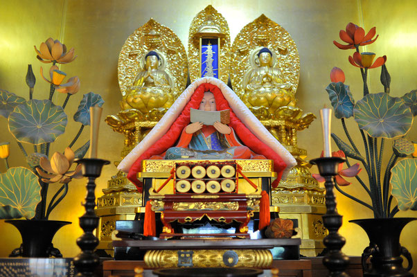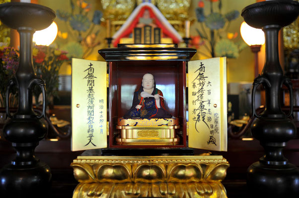 當山、本堂のご本尊は日蓮大聖人が図顕された十界未曾有大曼荼羅ご本尊を、仏像によりお祀りしてあります。中央上段に南無妙法蓮華経の宝塔を配し、釈迦牟尼佛、多寶如来が並座し、四菩薩が脇を固め、日蓮大聖人尊像を中心に諸神、諸菩薩が勧請されています。